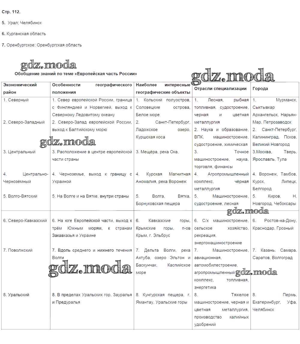 ГДЗ решение к заданию № 112 География России. Хозяйство и географические районы 9 класс рабочая тетрадь Ким Э.В. (к уч. Алексеева) Дрофа 2017 ФГОС бесплатно на гдз.мода!