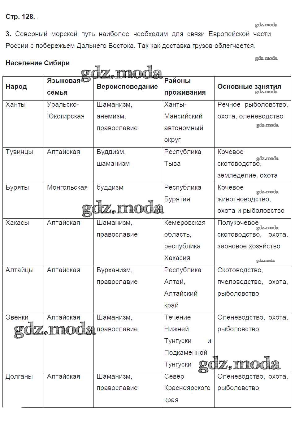 ГДЗ решение к заданию № 128 География России. Хозяйство и географические районы 9 класс рабочая тетрадь Ким Э.В. (к уч. Алексеева) Дрофа 2017 ФГОС бесплатно на гдз.мода!
