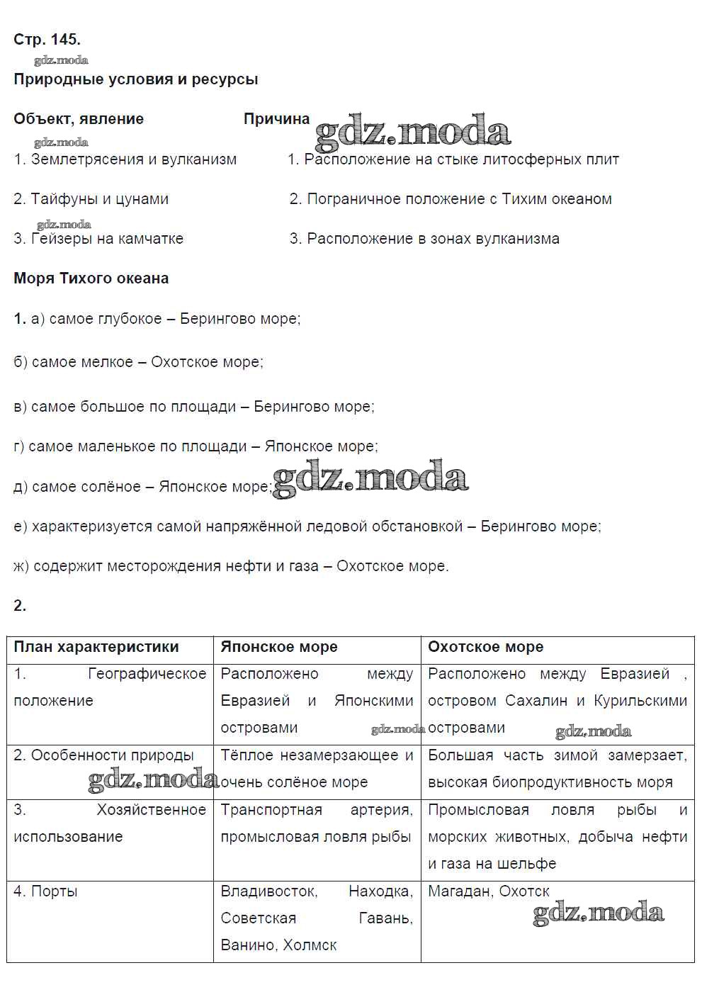 ГДЗ решение к заданию № 145 География России. Хозяйство и географические районы 9 класс рабочая тетрадь Ким Э.В. (к уч. Алексеева) Дрофа 2017 ФГОС бесплатно на гдз.мода!