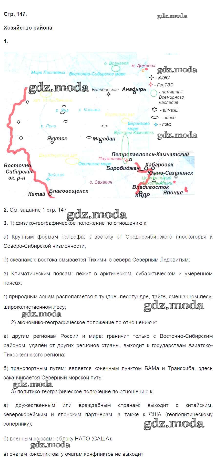 ГДЗ решение к заданию № 147 География России. Хозяйство и географические районы 9 класс рабочая тетрадь Ким Э.В. (к уч. Алексеева) Дрофа 2017 ФГОС бесплатно на гдз.мода!