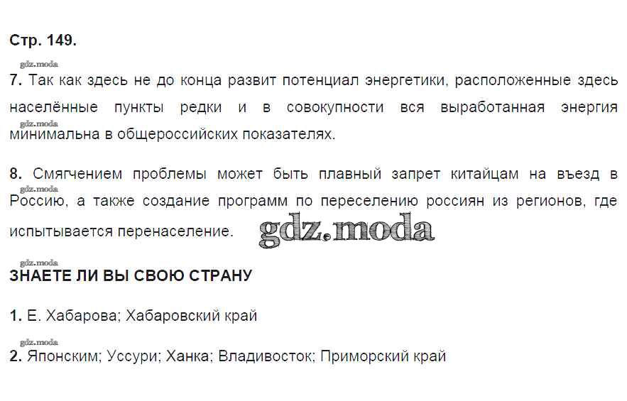 ГДЗ решение к заданию № 149 География России. Хозяйство и географические районы 9 класс рабочая тетрадь Ким Э.В. (к уч. Алексеева) Дрофа 2017 ФГОС бесплатно на гдз.мода!
