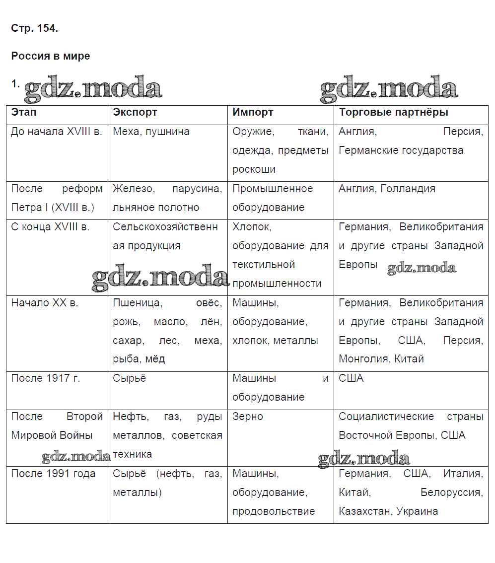ГДЗ решение к заданию № 154 География России. Хозяйство и географические районы 9 класс рабочая тетрадь Ким Э.В. (к уч. Алексеева) Дрофа 2017 ФГОС бесплатно на гдз.мода!