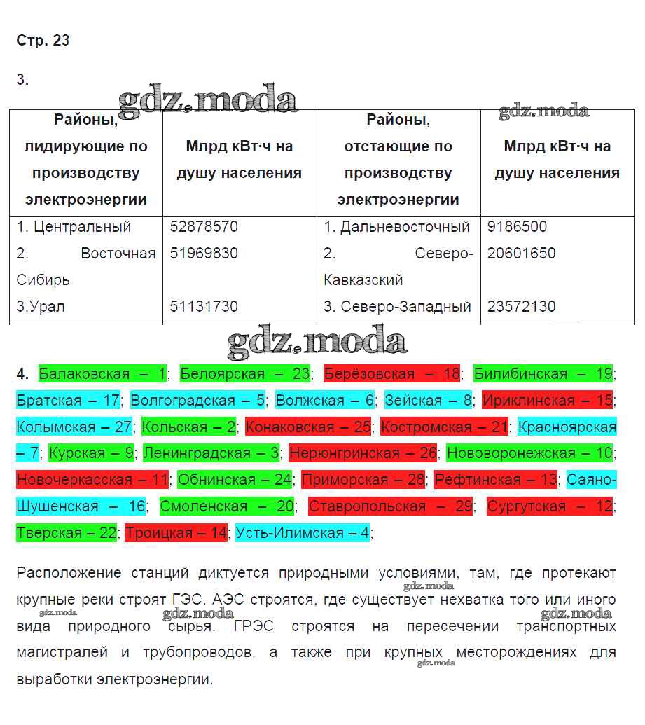 ГДЗ решение к заданию № 23 География России. Хозяйство и географические районы 9 класс рабочая тетрадь Ким Э.В. (к уч. Алексеева) Дрофа 2017 ФГОС бесплатно на гдз.мода!