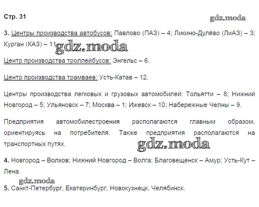 ГДЗ решение к заданию № 31 География России. Хозяйство и географические районы 9 класс рабочая тетрадь Ким Э.В. (к уч. Алексеева) Дрофа 2017 ФГОС бесплатно на гдз.мода!