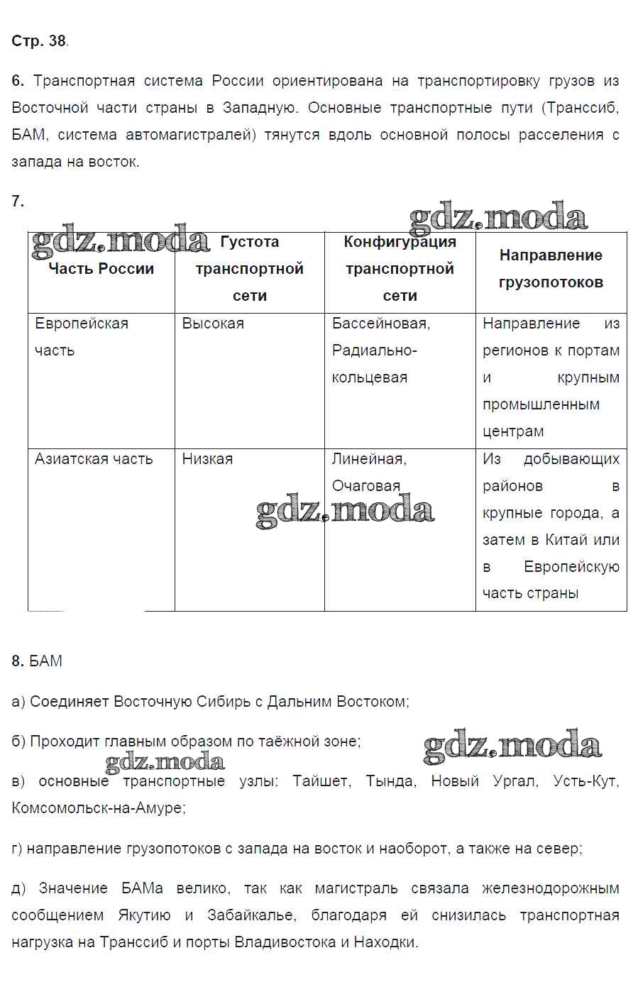 ГДЗ решение к заданию № 38 География России. Хозяйство и географические районы 9 класс рабочая тетрадь Ким Э.В. (к уч. Алексеева) Дрофа 2017 ФГОС бесплатно на гдз.мода!