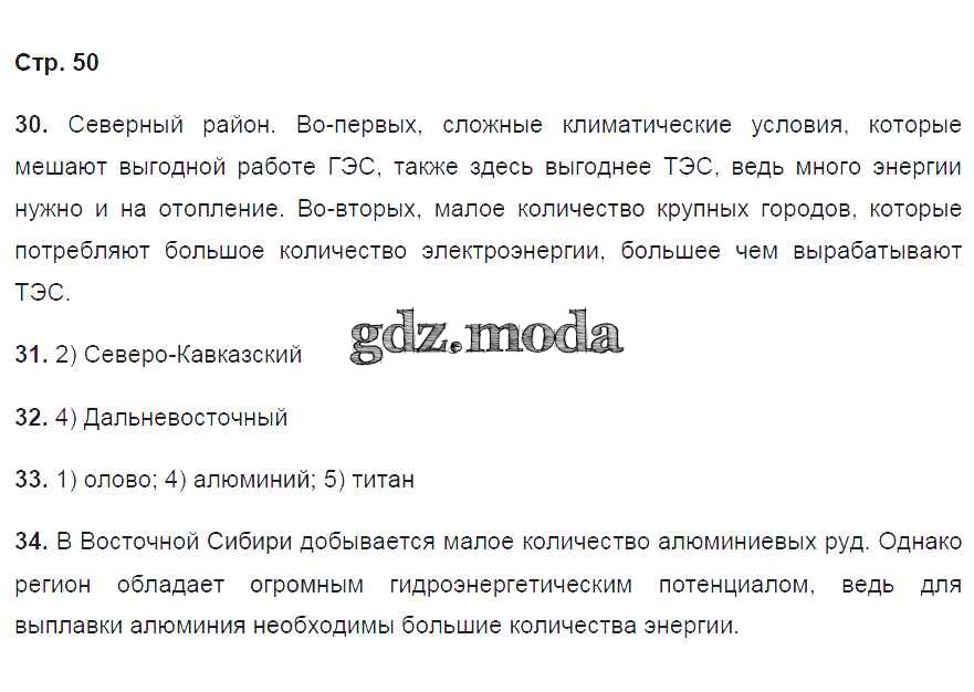 ГДЗ решение к заданию № 50 География России. Хозяйство и географические районы 9 класс рабочая тетрадь Ким Э.В. (к уч. Алексеева) Дрофа 2017 ФГОС бесплатно на гдз.мода!