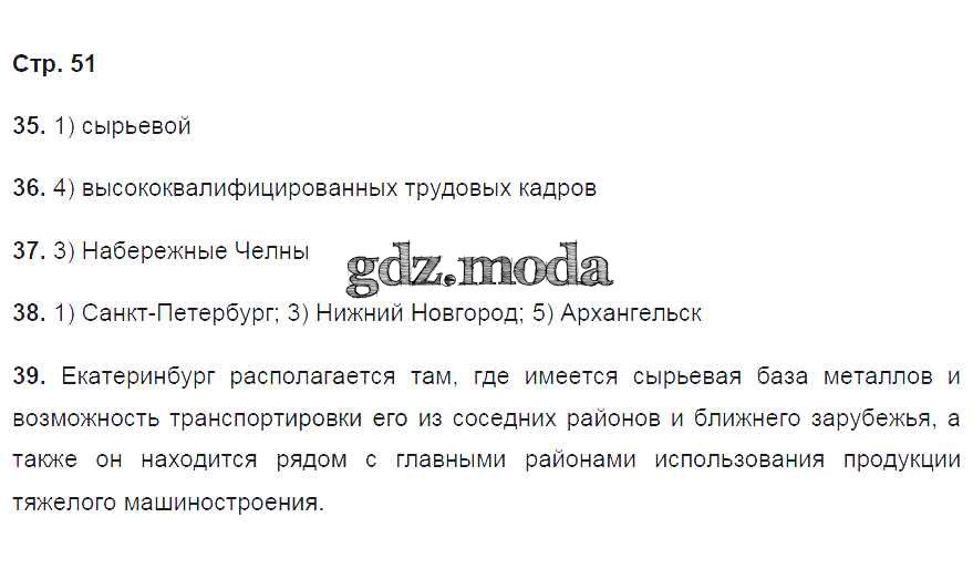 ГДЗ решение к заданию № 51 География России. Хозяйство и географические районы 9 класс рабочая тетрадь Ким Э.В. (к уч. Алексеева) Дрофа 2017 ФГОС бесплатно на гдз.мода!