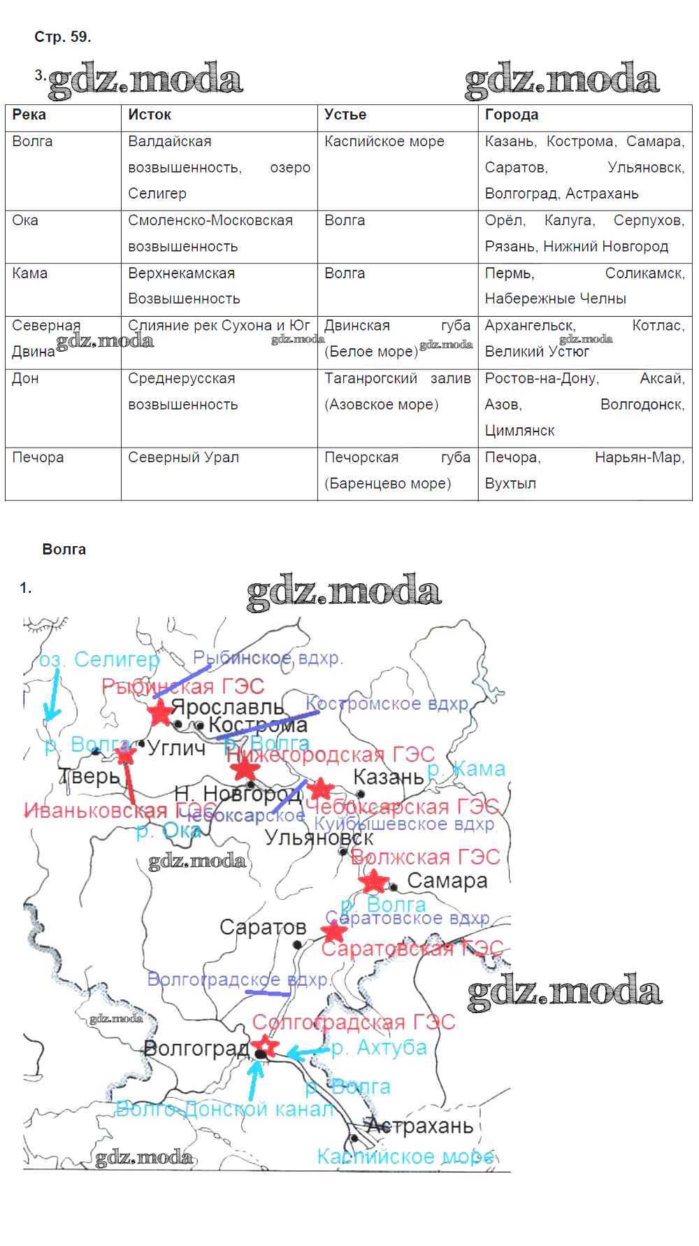 ГДЗ решение к заданию № 59 География России. Хозяйство и географические районы 9 класс рабочая тетрадь Ким Э.В. (к уч. Алексеева) Дрофа 2017 ФГОС бесплатно на гдз.мода!