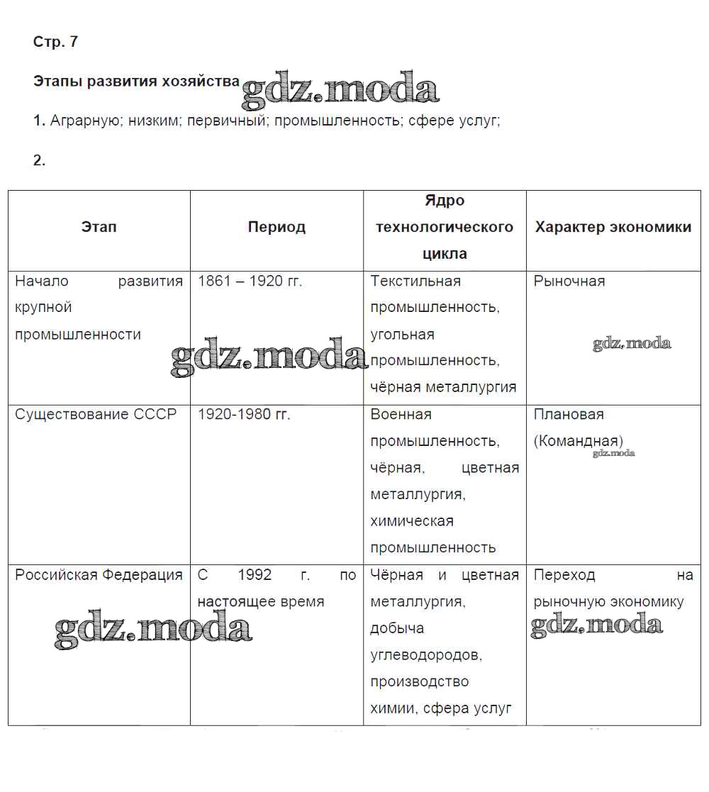 ГДЗ решение к заданию № 7 География России. Хозяйство и географические районы 9 класс рабочая тетрадь Ким Э.В. (к уч. Алексеева) Дрофа 2017 ФГОС бесплатно на гдз.мода!