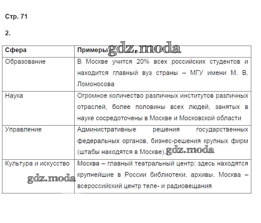 ГДЗ решение к заданию № 71 География России. Хозяйство и географические районы 9 класс рабочая тетрадь Ким Э.В. (к уч. Алексеева) Дрофа 2017 ФГОС бесплатно на гдз.мода!