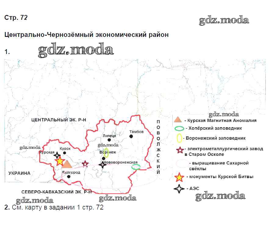 ГДЗ решение к заданию № 72 География России. Хозяйство и географические районы 9 класс рабочая тетрадь Ким Э.В. (к уч. Алексеева) Дрофа 2017 ФГОС бесплатно на гдз.мода!