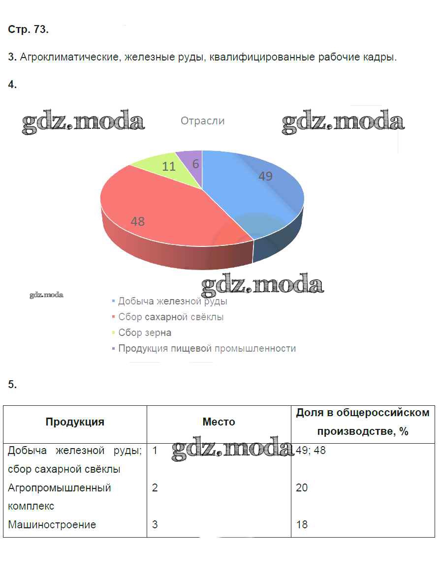 ГДЗ решение к заданию № 73 География России. Хозяйство и географические районы 9 класс рабочая тетрадь Ким Э.В. (к уч. Алексеева) Дрофа 2017 ФГОС бесплатно на гдз.мода!