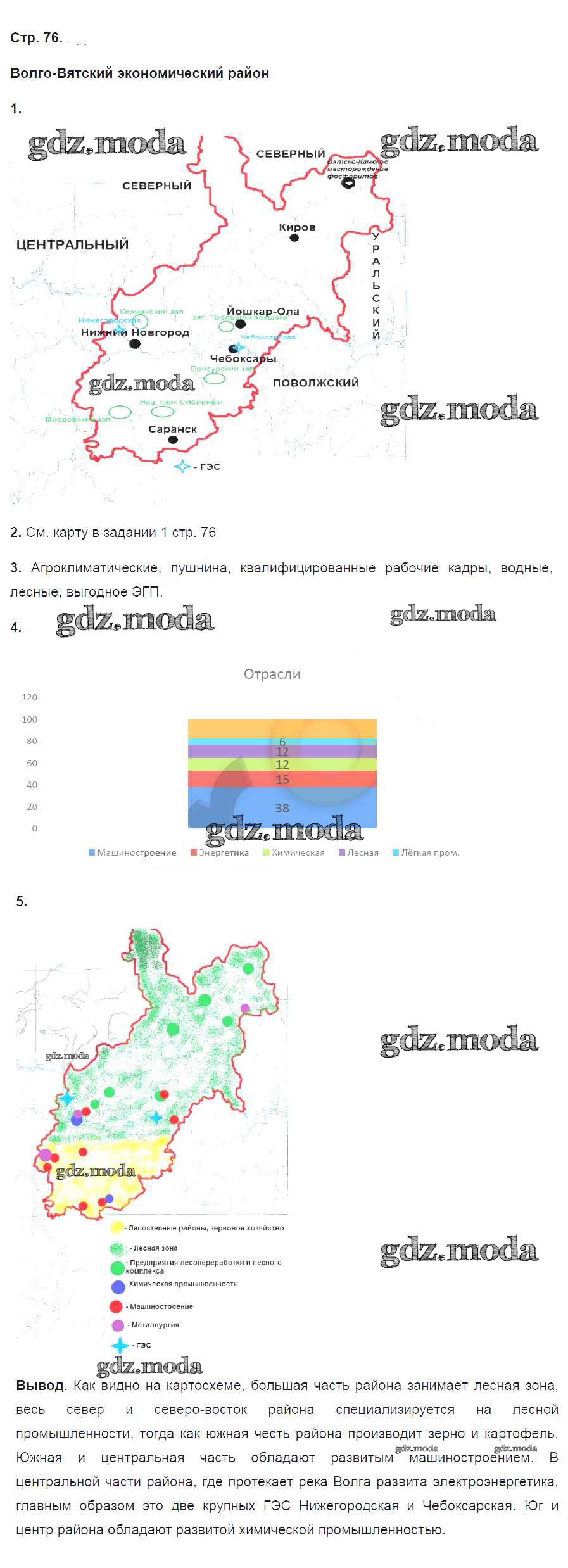 ГДЗ решение к заданию № 76 География России. Хозяйство и географические районы 9 класс рабочая тетрадь Ким Э.В. (к уч. Алексеева) Дрофа 2017 ФГОС бесплатно на гдз.мода!