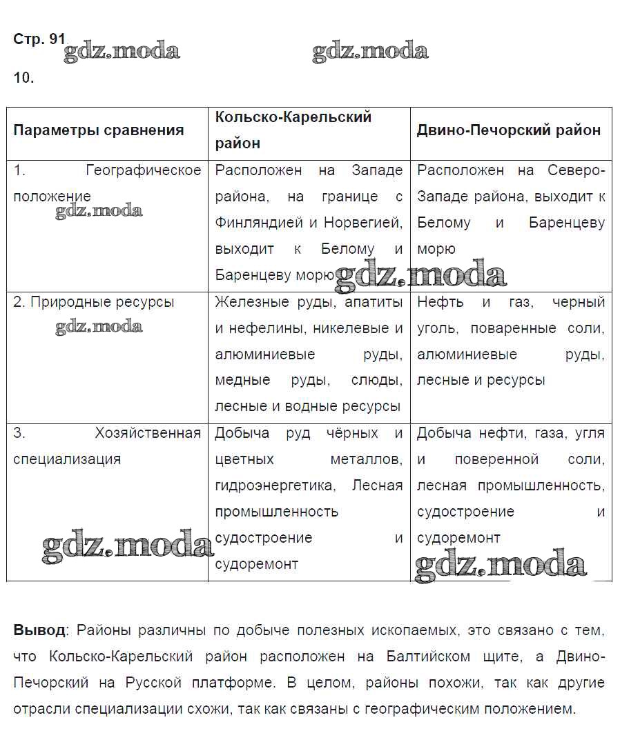 ГДЗ решение к заданию № 91 География России. Хозяйство и географические районы 9 класс рабочая тетрадь Ким Э.В. (к уч. Алексеева) Дрофа 2017 ФГОС бесплатно на гдз.мода!