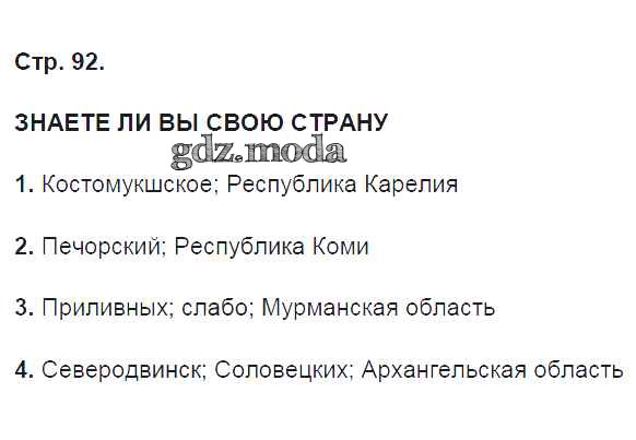 ГДЗ решение к заданию № 92 География России. Хозяйство и географические районы 9 класс рабочая тетрадь Ким Э.В. (к уч. Алексеева) Дрофа 2017 ФГОС бесплатно на гдз.мода!