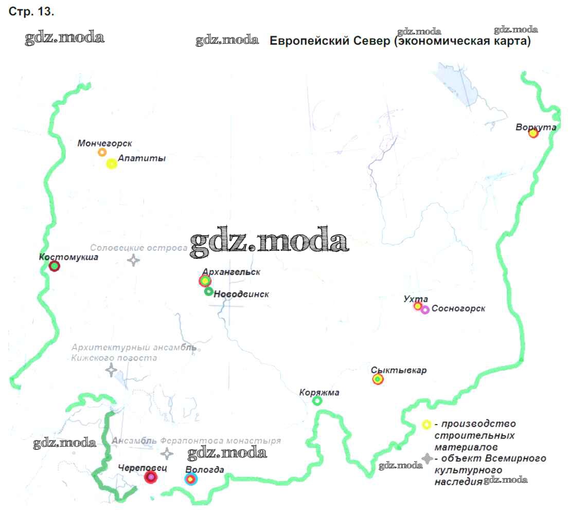 ГДЗ решение к заданию № 13 География России 9 класс контурные карты Котляр О.Г. Просвещение 2019 ФГОС бесплатно на гдз.мода!