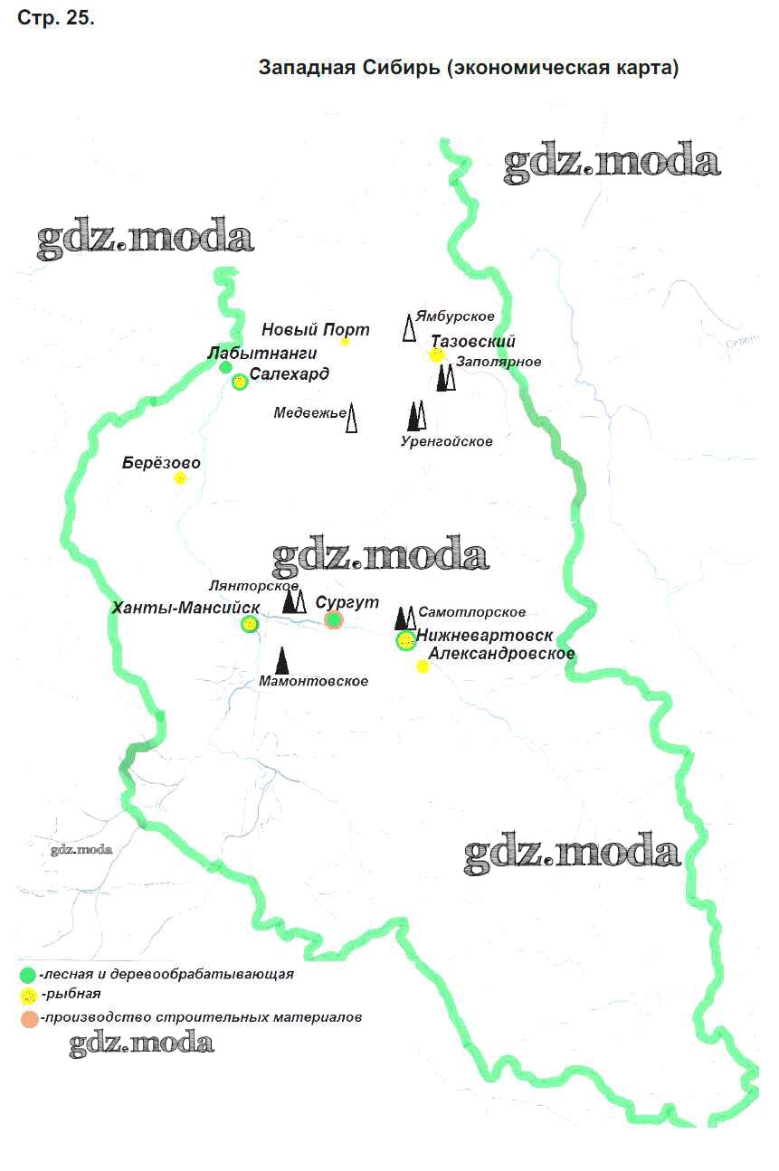 ГДЗ решение к заданию № 25 География России 9 класс контурные карты Котляр О.Г. Просвещение 2019 ФГОС бесплатно на гдз.мода!