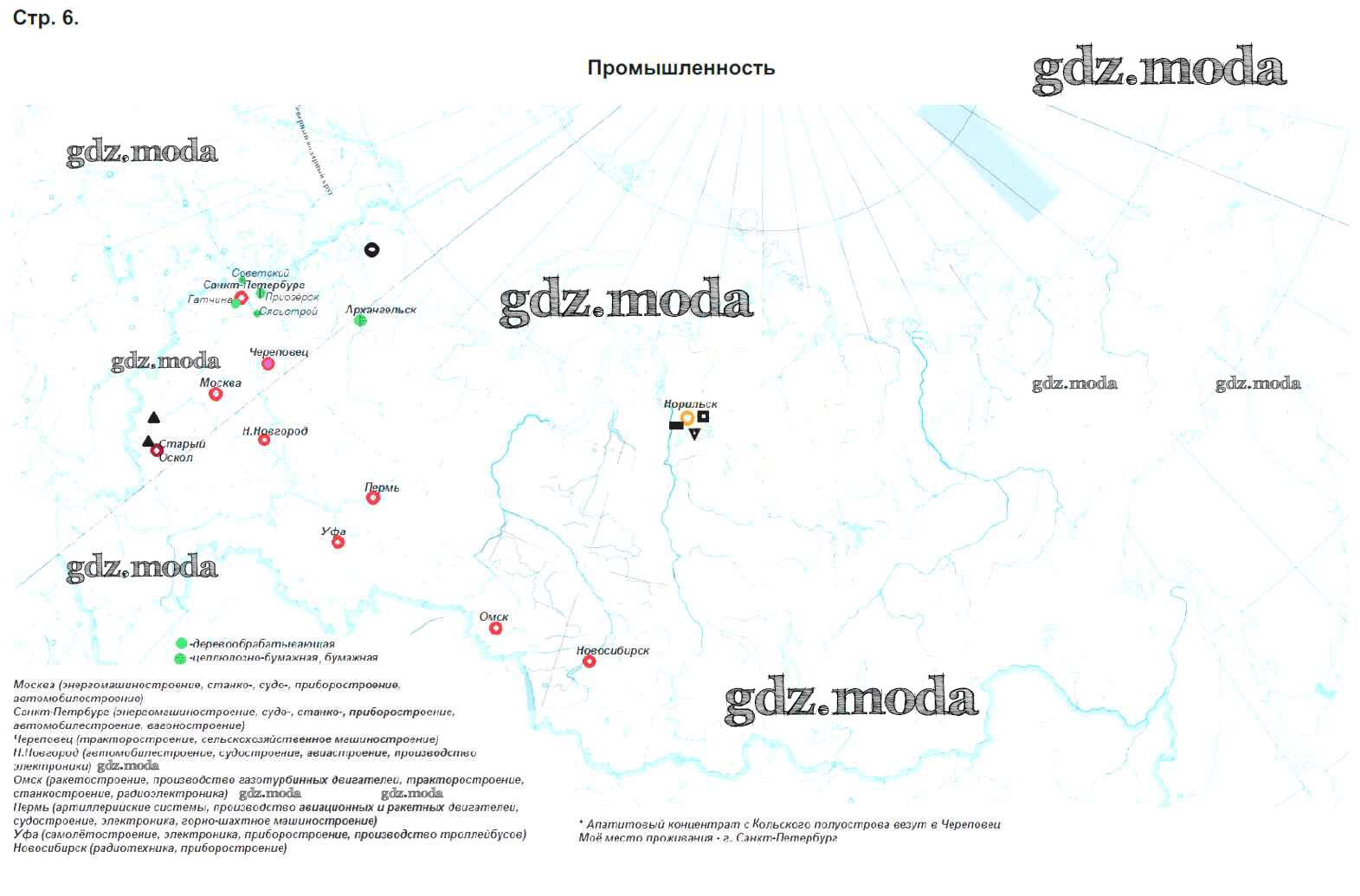 ГДЗ решение к заданию № 6 География России 9 класс контурные карты Котляр О.Г. Просвещение 2019 ФГОС бесплатно на гдз.мода!