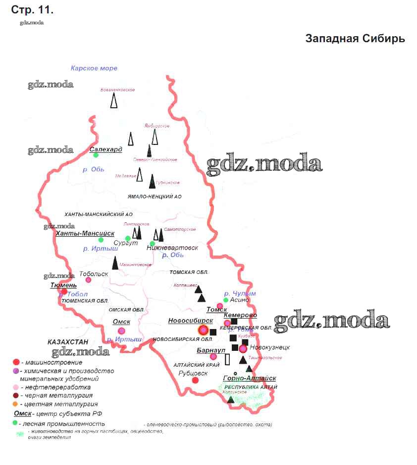 ГДЗ решение к заданию № стр.11. Западная Сибирь География 9 класс контурные карты Приваловский А.Н. Дрофа 2020 ФГОС бесплатно на гдз.мода!