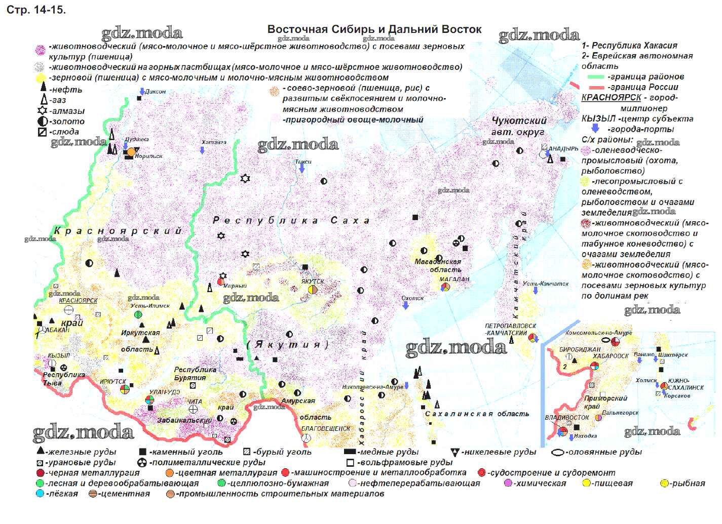 ГДЗ решение к заданию № стр.14. Восточная Сибирь и Дальний Восток География 9 класс контурные карты Приваловский А.Н. Дрофа 2020 ФГОС бесплатно на гдз.мода!