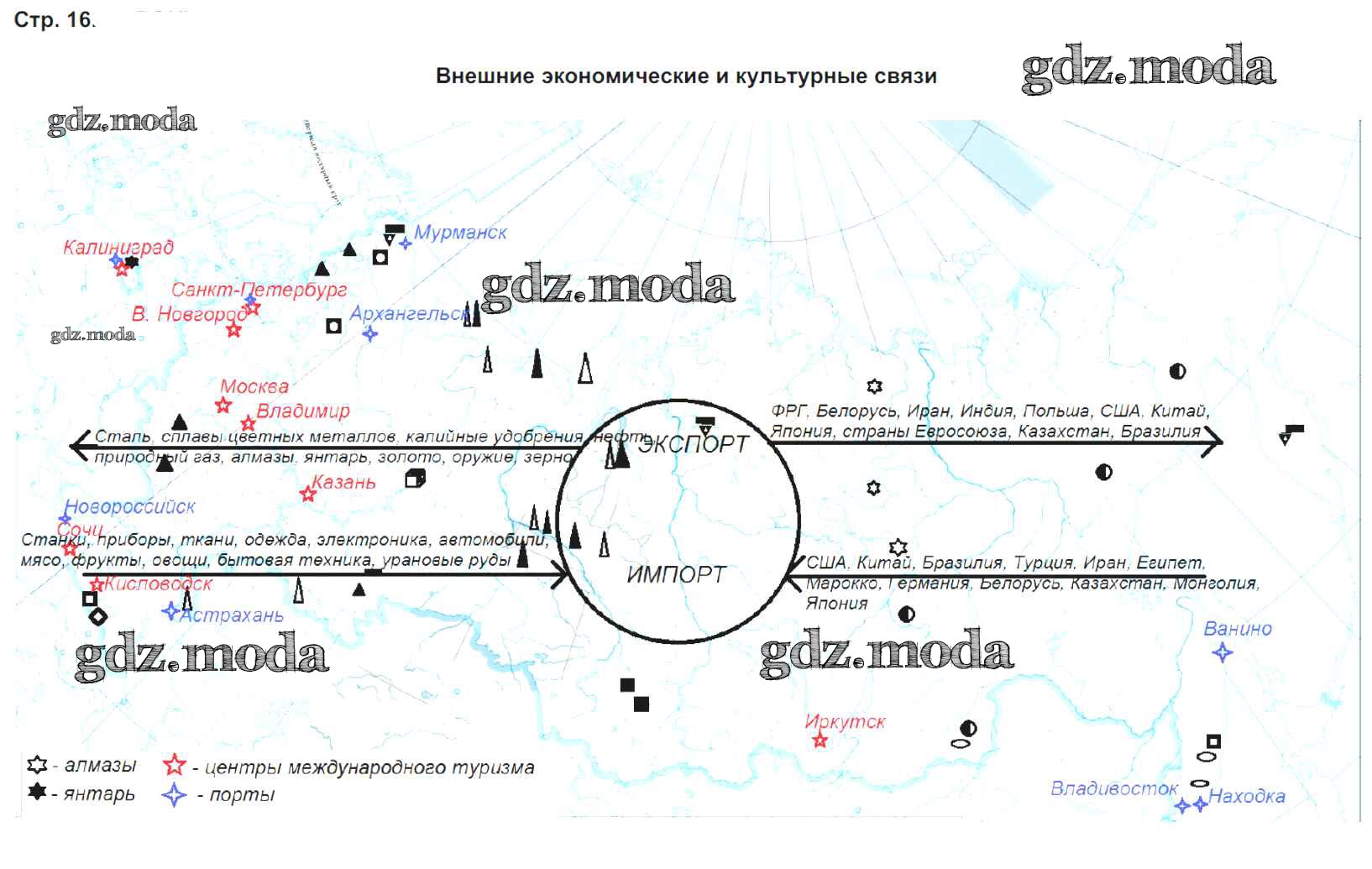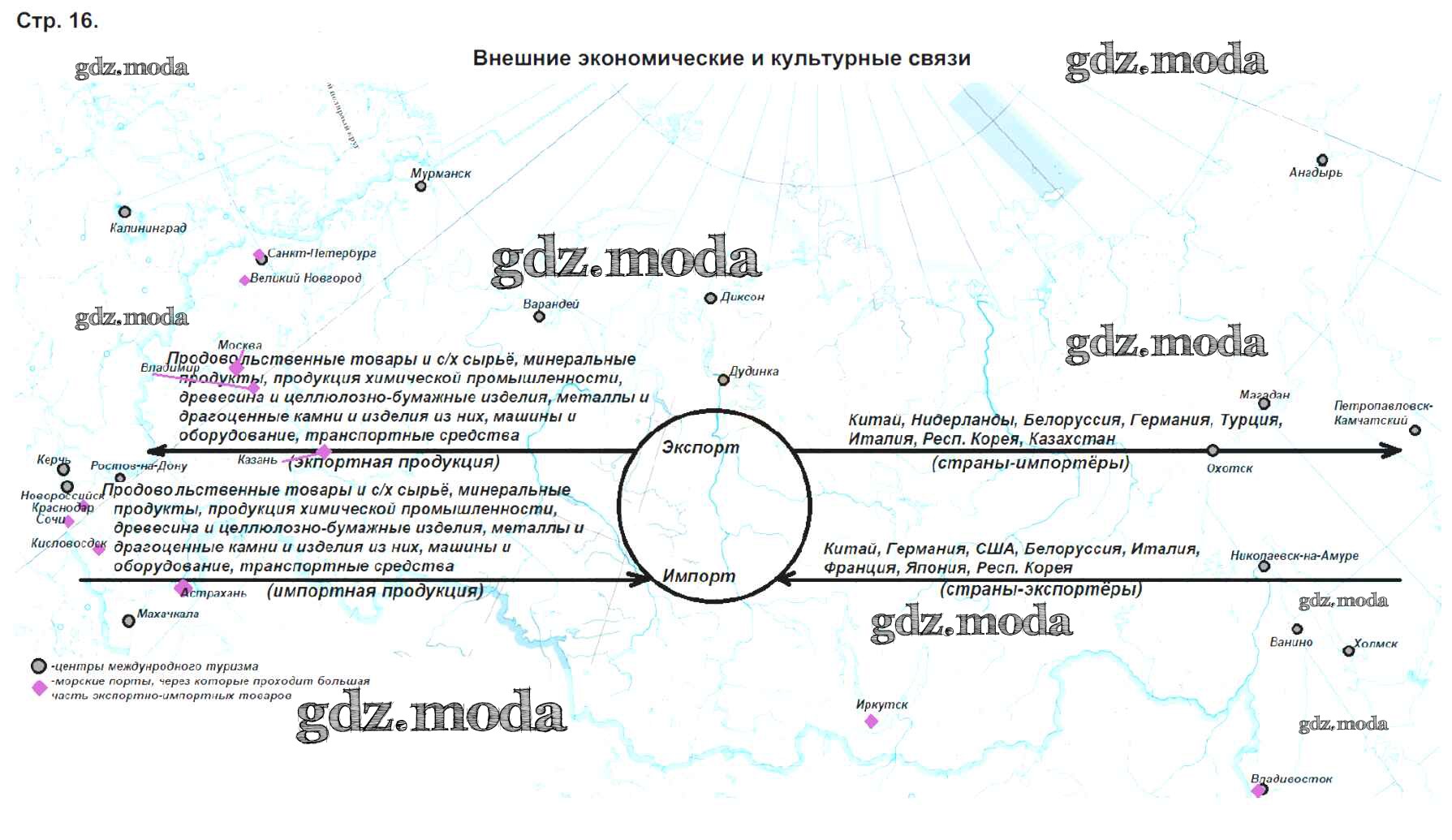 ГДЗ решение к заданию № стр.16. Внешние экономические и культурные связи География 9 класс контурные карты Приваловский А.Н. Дрофа 2020 ФГОС бесплатно на гдз.мода!