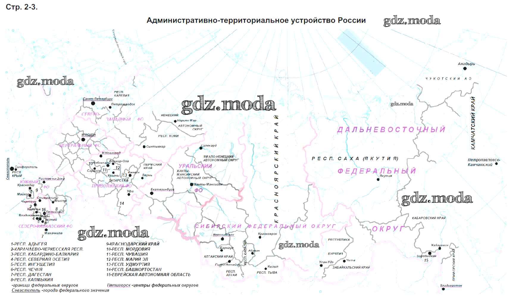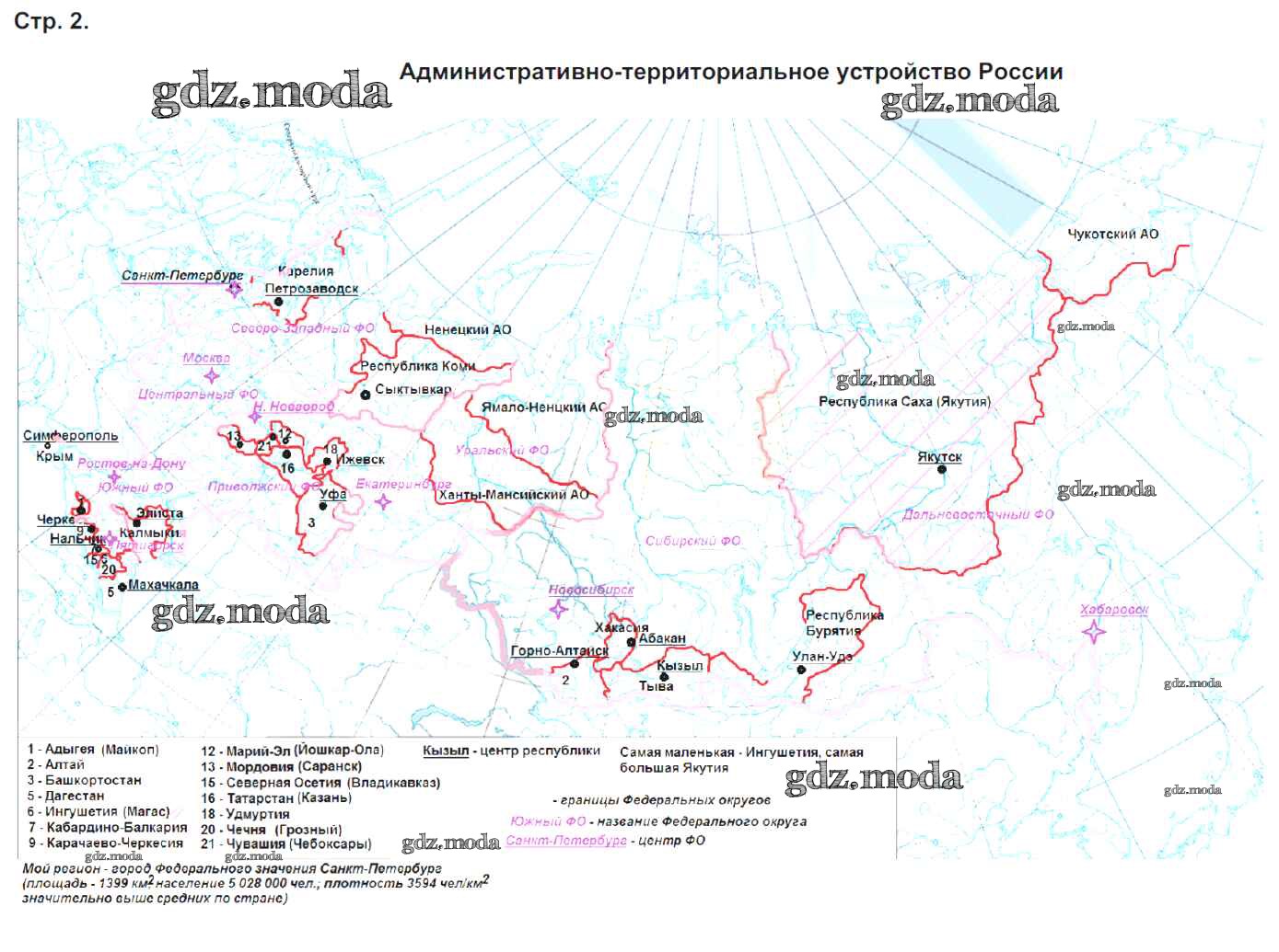 ОТВЕТ на задание № стр.2. Административно-территориальное устройство России Контурные карты по Географии 9 класс Приваловский