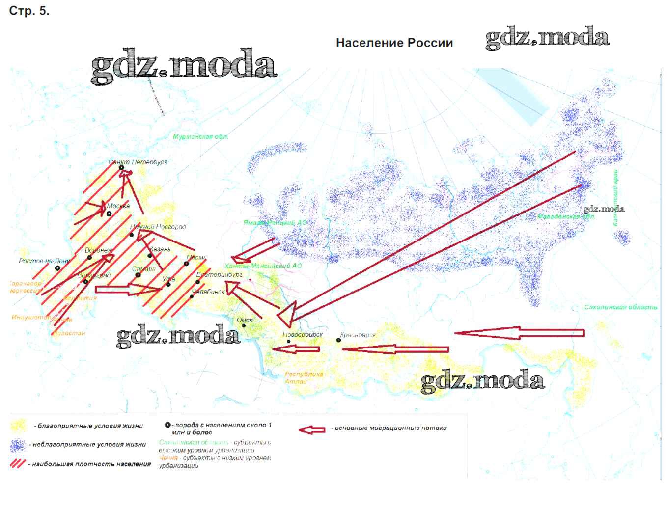 ГДЗ решение к заданию № стр.5. Население России-2 География 9 класс контурные карты Приваловский А.Н. Дрофа 2020 ФГОС бесплатно на гдз.мода!