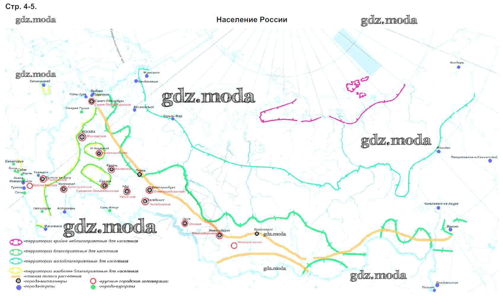 ОТВЕТ на задание № стр.5. Население России-2 Контурные карты по Географии 9 класс Приваловский