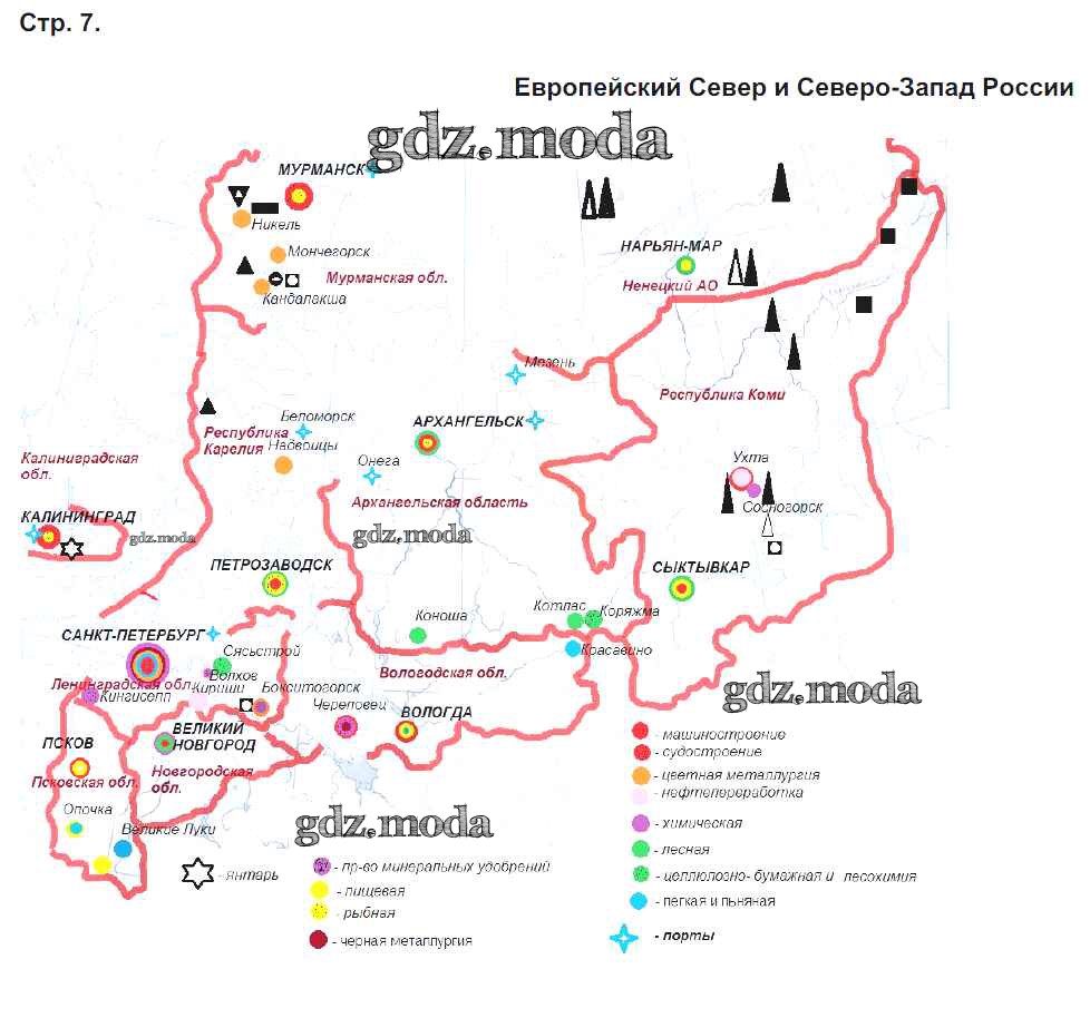 ГДЗ решение к заданию № стр.7. Европейский Север и Северо-Запад России География 9 класс контурные карты Приваловский А.Н. Дрофа 2020 ФГОС бесплатно на гдз.мода!