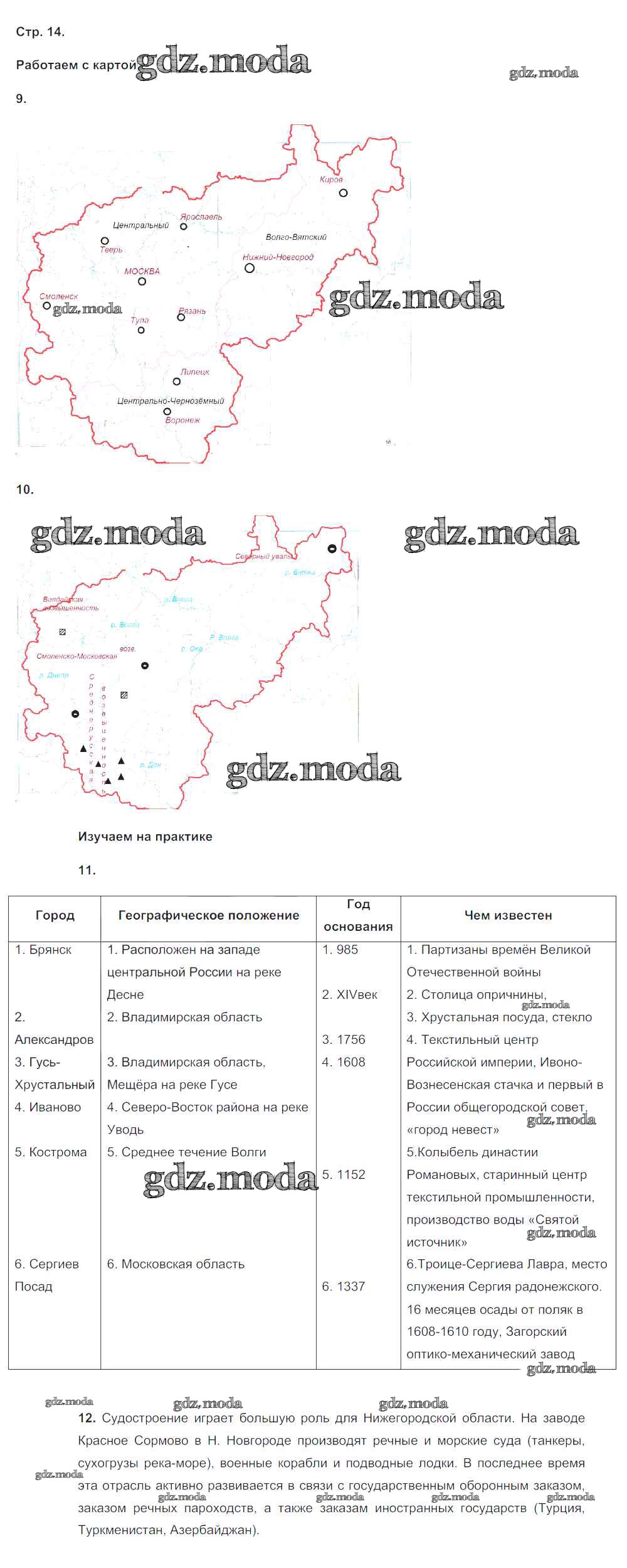 ГДЗ решение к заданию № 14 География 9 класс тетрадь-тренажер Николина В.В. Просвещение 2016 ФГОС бесплатно на гдз.мода!