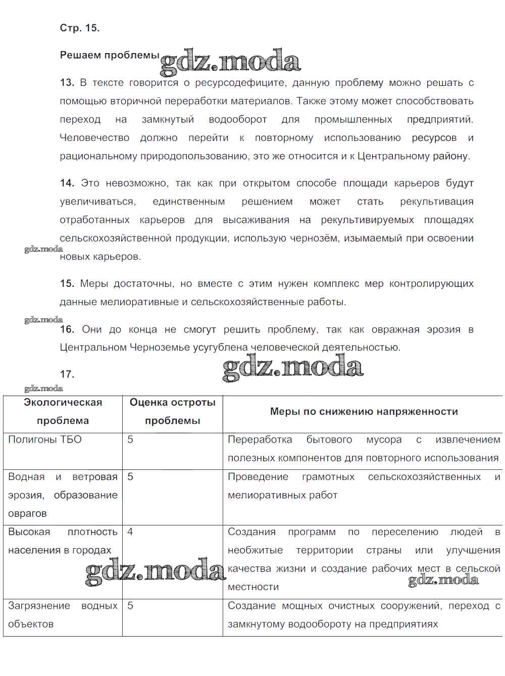 ГДЗ решение к заданию № 15 География 9 класс тетрадь-тренажер Николина В.В. Просвещение 2016 ФГОС бесплатно на гдз.мода!