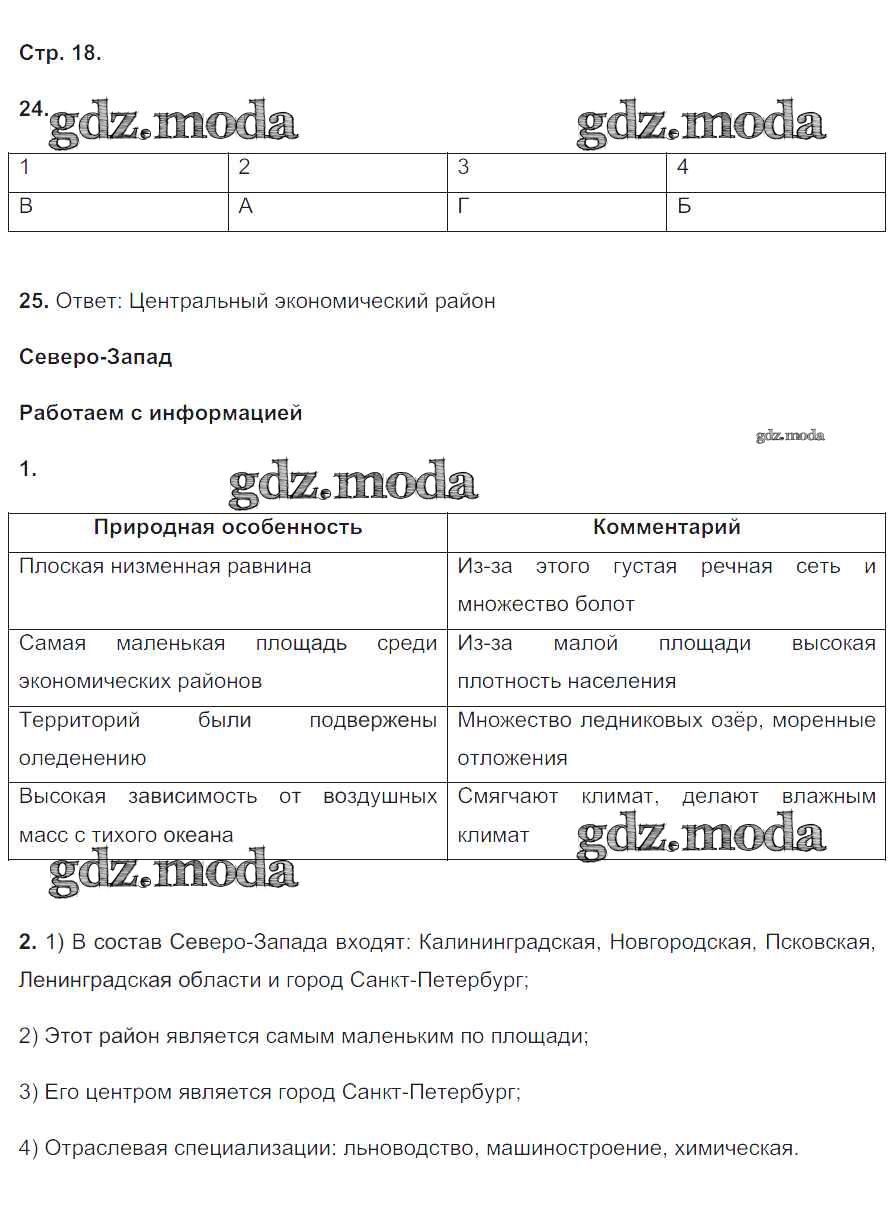 ГДЗ решение к заданию № 18 География 9 класс тетрадь-тренажер Николина В.В. Просвещение 2016 ФГОС бесплатно на гдз.мода!
