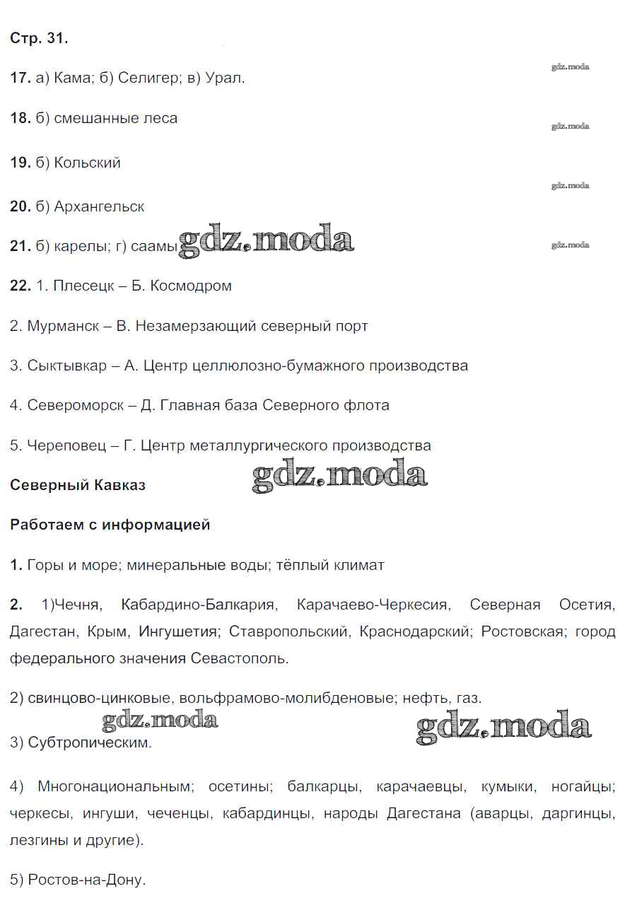 ГДЗ решение к заданию № 31 География 9 класс тетрадь-тренажер Николина В.В. Просвещение 2016 ФГОС бесплатно на гдз.мода!