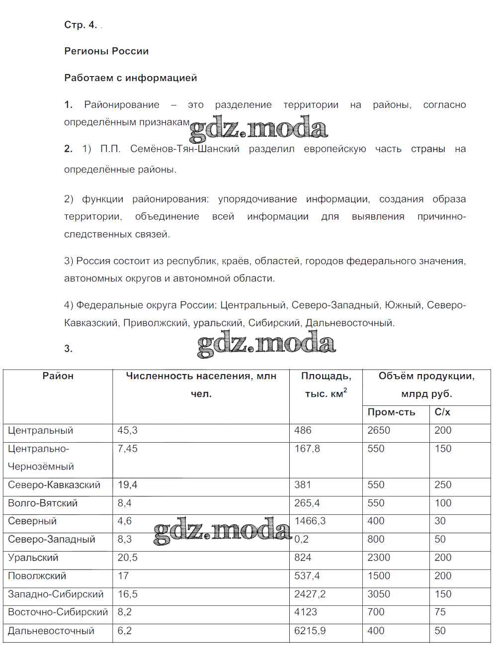 ГДЗ решение к заданию № 4 География 9 класс тетрадь-тренажер Николина В.В. Просвещение 2016 ФГОС бесплатно на гдз.мода!