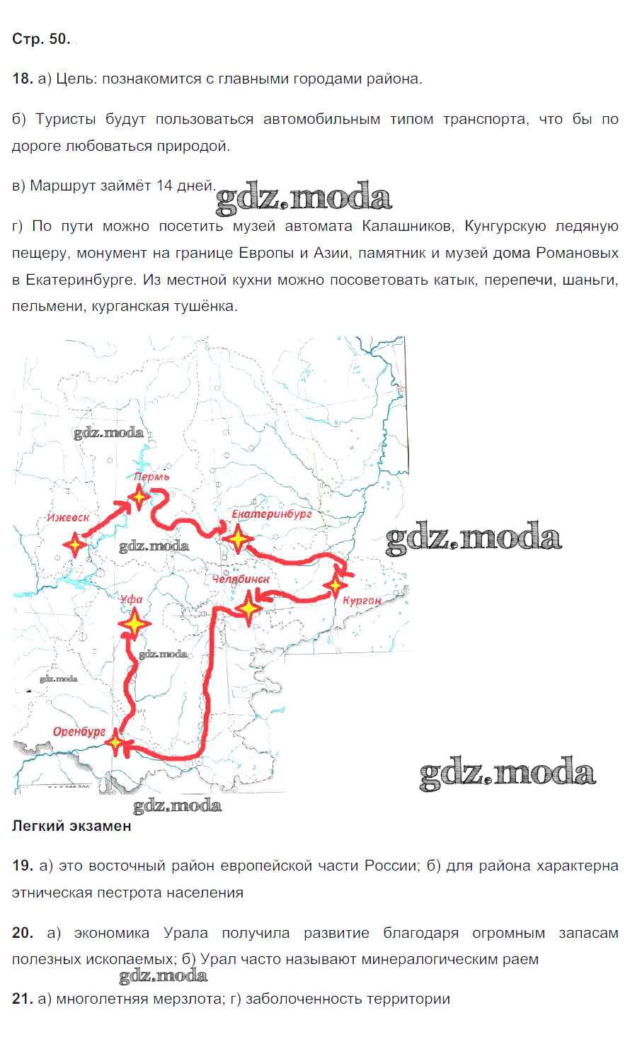 ГДЗ решение к заданию № 50 География 9 класс тетрадь-тренажер Николина В.В. Просвещение 2016 ФГОС бесплатно на гдз.мода!