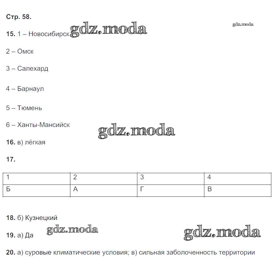 ГДЗ решение к заданию № 58 География 9 класс тетрадь-тренажер Николина В.В. Просвещение 2016 ФГОС бесплатно на гдз.мода!