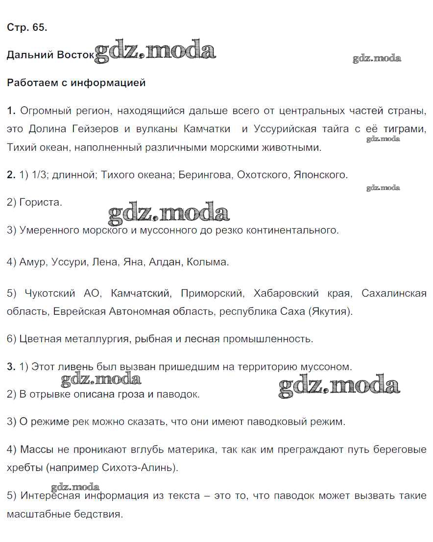 ГДЗ решение к заданию № 65 География 9 класс тетрадь-тренажер Николина В.В. Просвещение 2016 ФГОС бесплатно на гдз.мода!