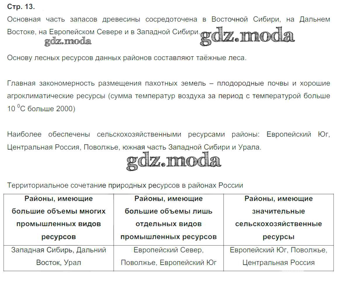 ГДЗ решение к заданию № 13 География России 9 класс тетрадь-практикум Ольховая Н.В. Просвещение 2016 ФГОС бесплатно на гдз.мода!