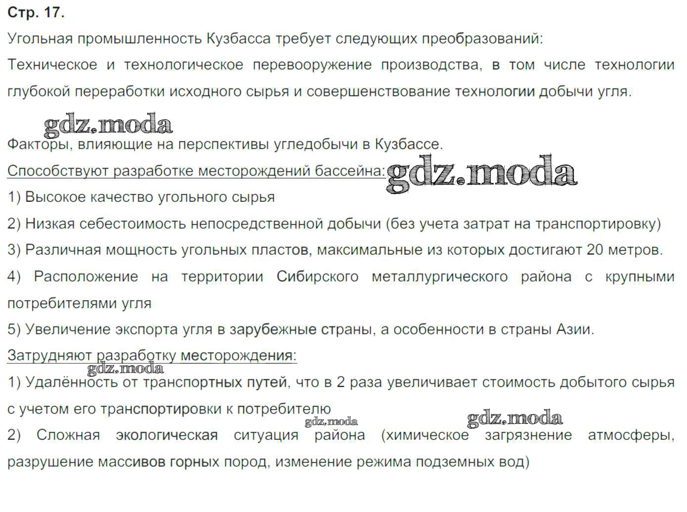 ГДЗ решение к заданию № 17 География России 9 класс тетрадь-практикум Ольховая Н.В. Просвещение 2016 ФГОС бесплатно на гдз.мода!
