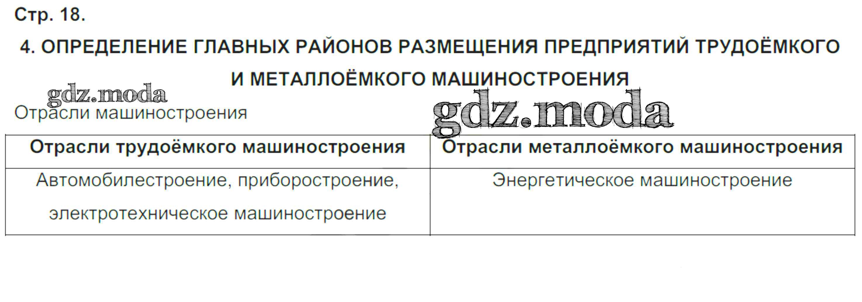 ГДЗ решение к заданию № 18 География России 9 класс тетрадь-практикум Ольховая Н.В. Просвещение 2016 ФГОС бесплатно на гдз.мода!