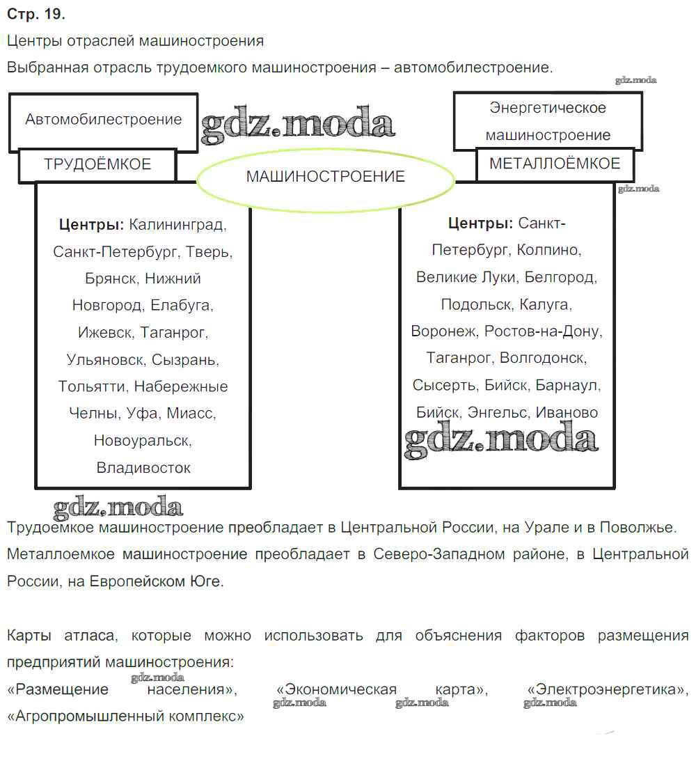ГДЗ решение к заданию № 19 География России 9 класс тетрадь-практикум Ольховая Н.В. Просвещение 2016 ФГОС бесплатно на гдз.мода!