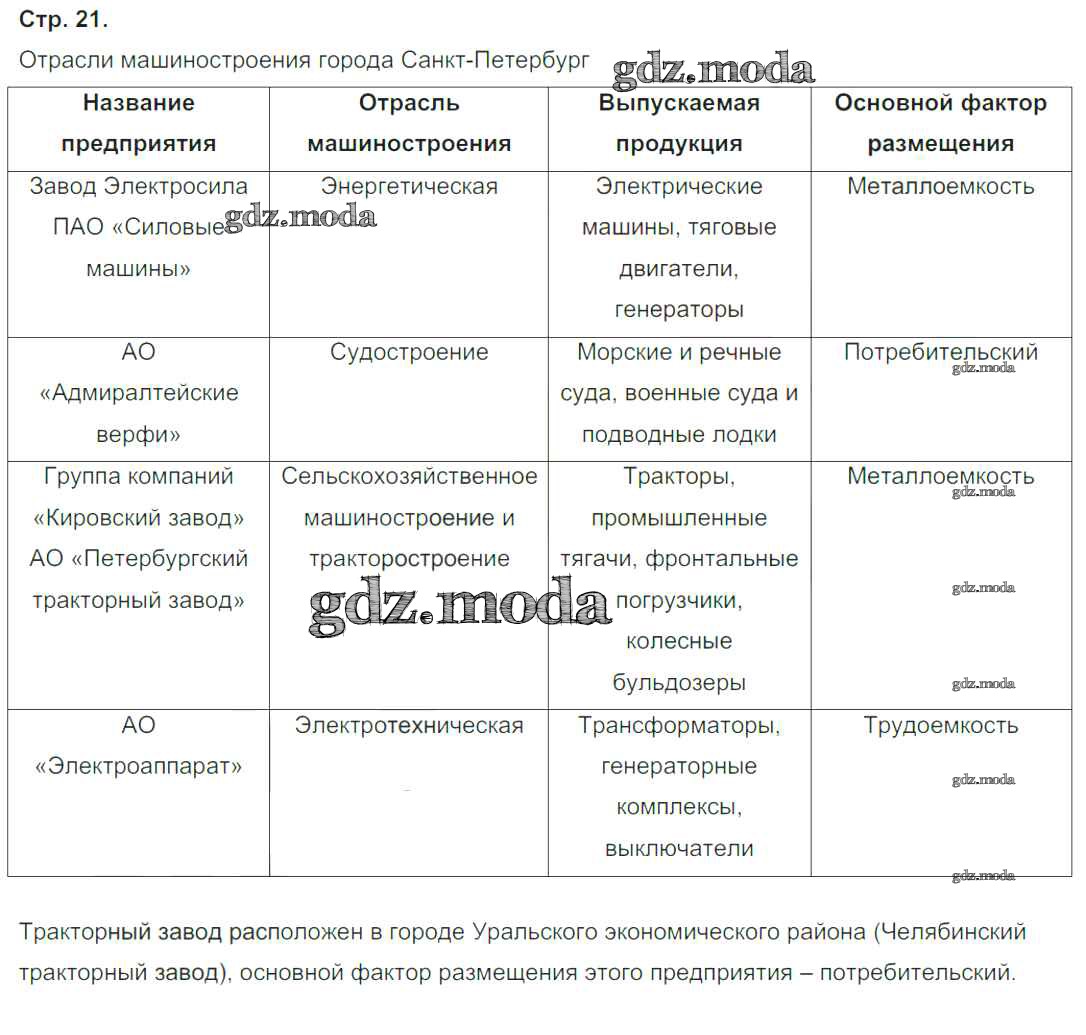 ГДЗ решение к заданию № 21 География России 9 класс тетрадь-практикум Ольховая Н.В. Просвещение 2016 ФГОС бесплатно на гдз.мода!