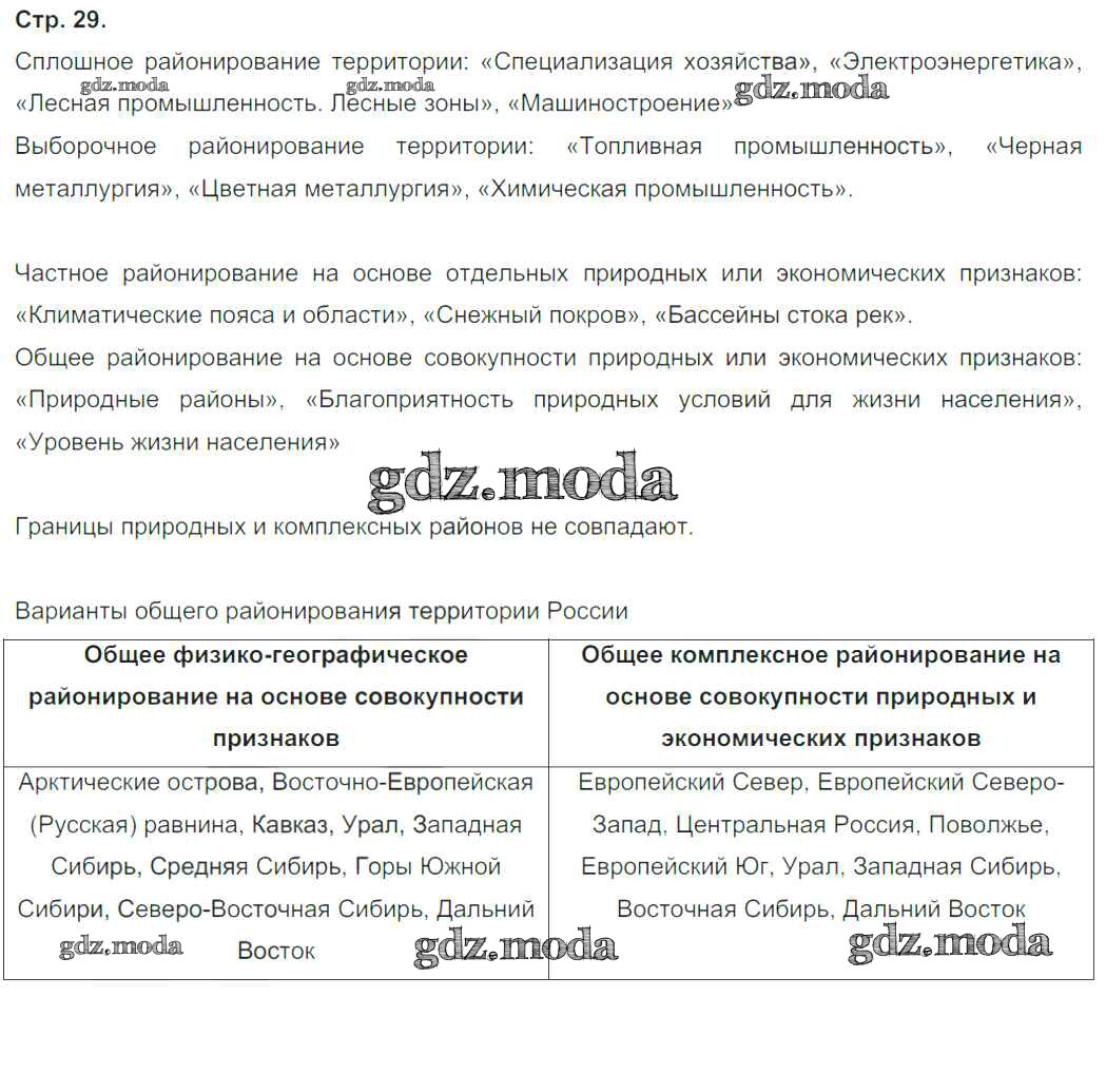 ГДЗ решение к заданию № 29 География России 9 класс тетрадь-практикум Ольховая Н.В. Просвещение 2016 ФГОС бесплатно на гдз.мода!