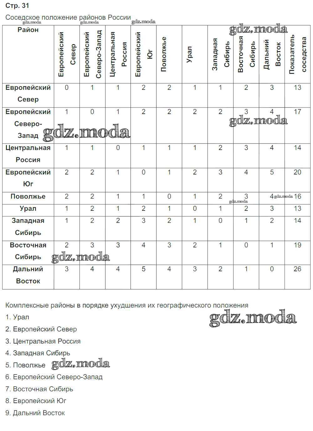 ГДЗ решение к заданию № 31 География России 9 класс тетрадь-практикум Ольховая Н.В. Просвещение 2016 ФГОС бесплатно на гдз.мода!