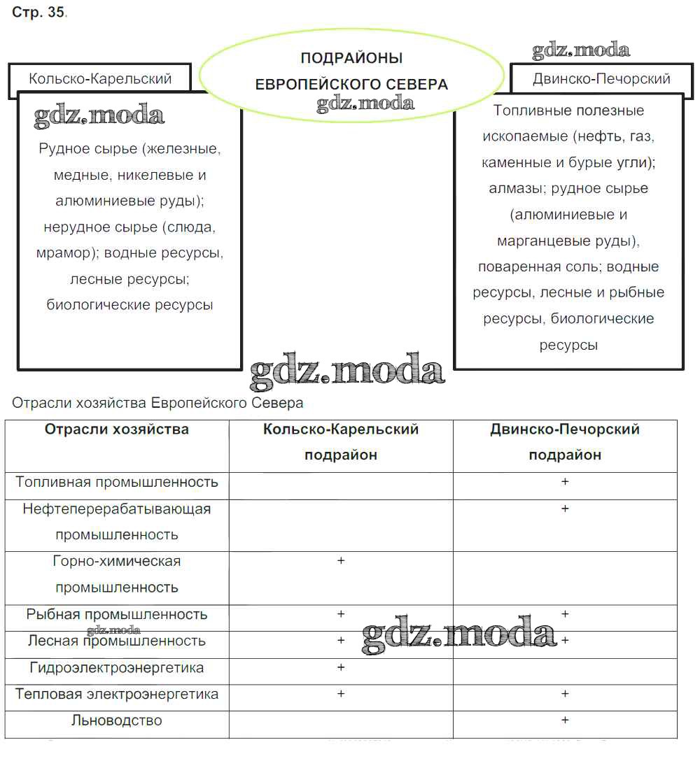 ГДЗ решение к заданию № 35 География России 9 класс тетрадь-практикум Ольховая Н.В. Просвещение 2016 ФГОС бесплатно на гдз.мода!