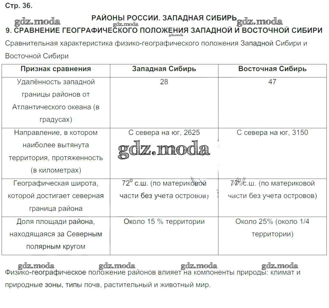 ГДЗ решение к заданию № 36 География России 9 класс тетрадь-практикум Ольховая Н.В. Просвещение 2016 ФГОС бесплатно на гдз.мода!