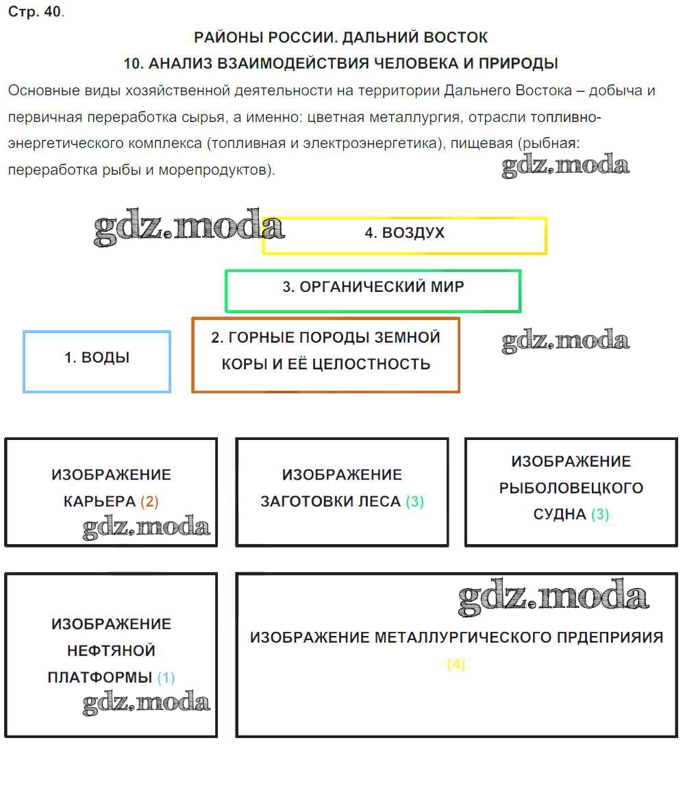ГДЗ решение к заданию № 40 География России 9 класс тетрадь-практикум Ольховая Н.В. Просвещение 2016 ФГОС бесплатно на гдз.мода!