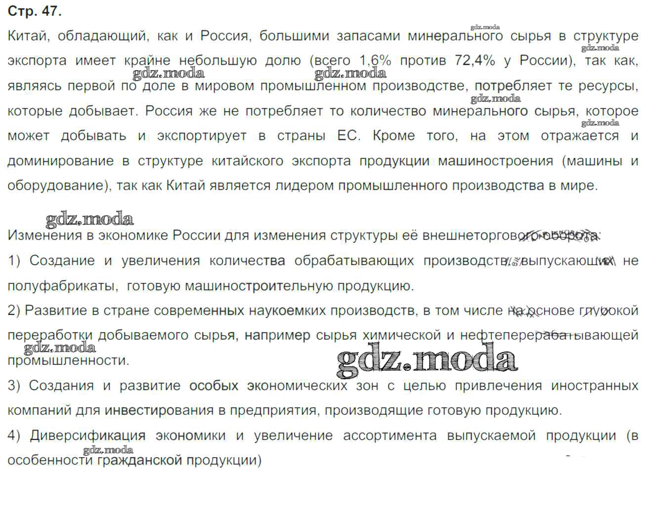 ГДЗ решение к заданию № 47 География России 9 класс тетрадь-практикум Ольховая Н.В. Просвещение 2016 ФГОС бесплатно на гдз.мода!