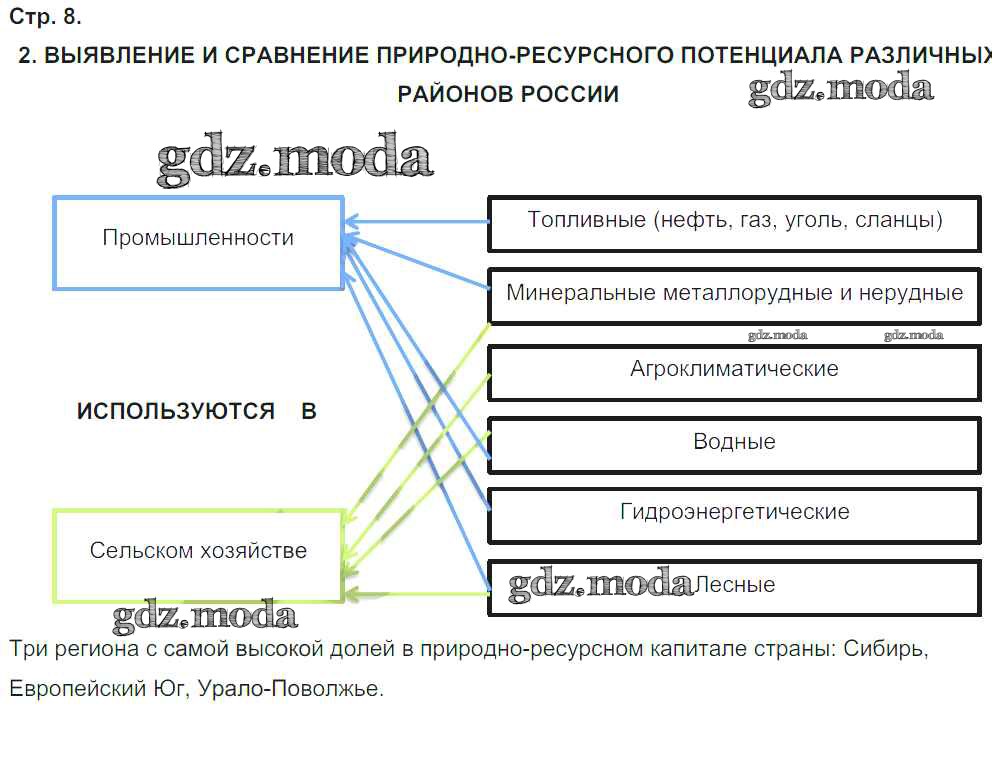 ГДЗ решение к заданию № 8 География России 9 класс тетрадь-практикум Ольховая Н.В. Просвещение 2016 ФГОС бесплатно на гдз.мода!