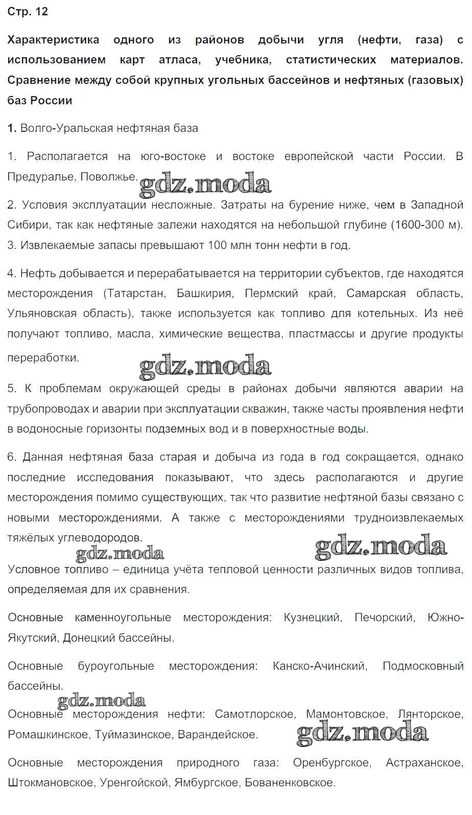 ГДЗ решение к заданию № 12 География России. Население и хозяйство 9 класс Рабочая тетрадь с контурными картами Сиротин В.И. Дрофа 2020 ФГОС бесплатно на гдз.мода!